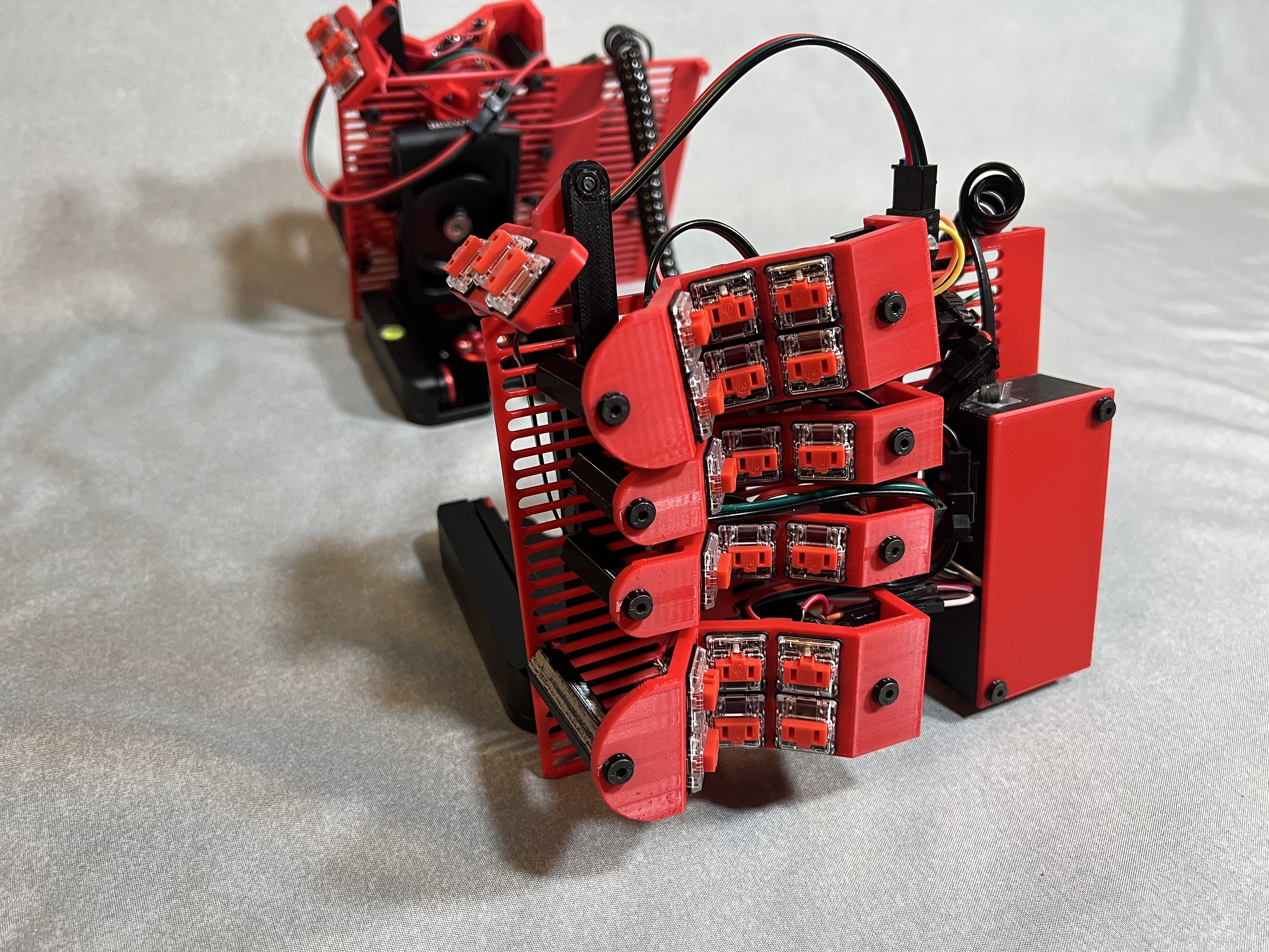 - Modular design facilitates things like swapping in a different thumb cluster, for example