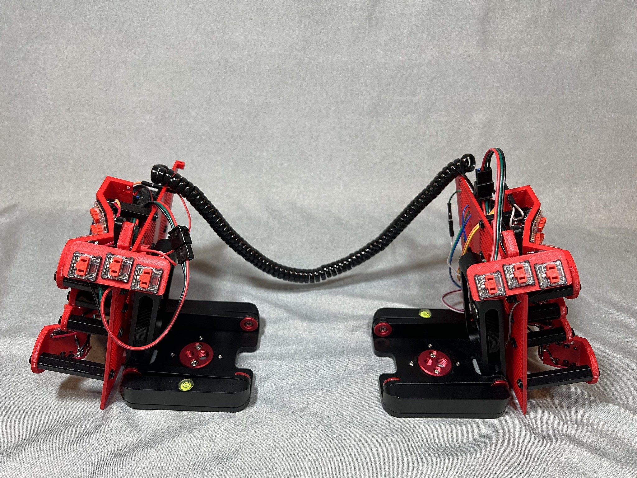 My current daily driver is a TBK Mini which has 6 columns for the fingers, and although I'm trying to not use the pinky very much, that extra row does come in really handy and simplify layouts, so I added an extra column for the pinky to reach to. This also gives me better hope of switching to make the Squeezebox my daily driver since now it has exactly the same number of finger keys and the same thumb cluster arrangement as the TBK mini so all I have to deal with is the form factor switch itself but my keymap setup can be identical. So each hand now has a pair of 6-key double wide units (pinky and index), and a pair of 3-key units (middle and index) and a 3-key thumb cluster.