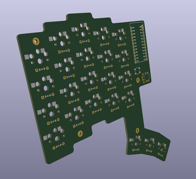 - PCB needs only 3 distinct electronic footprints: switches, MCU, and TRRS